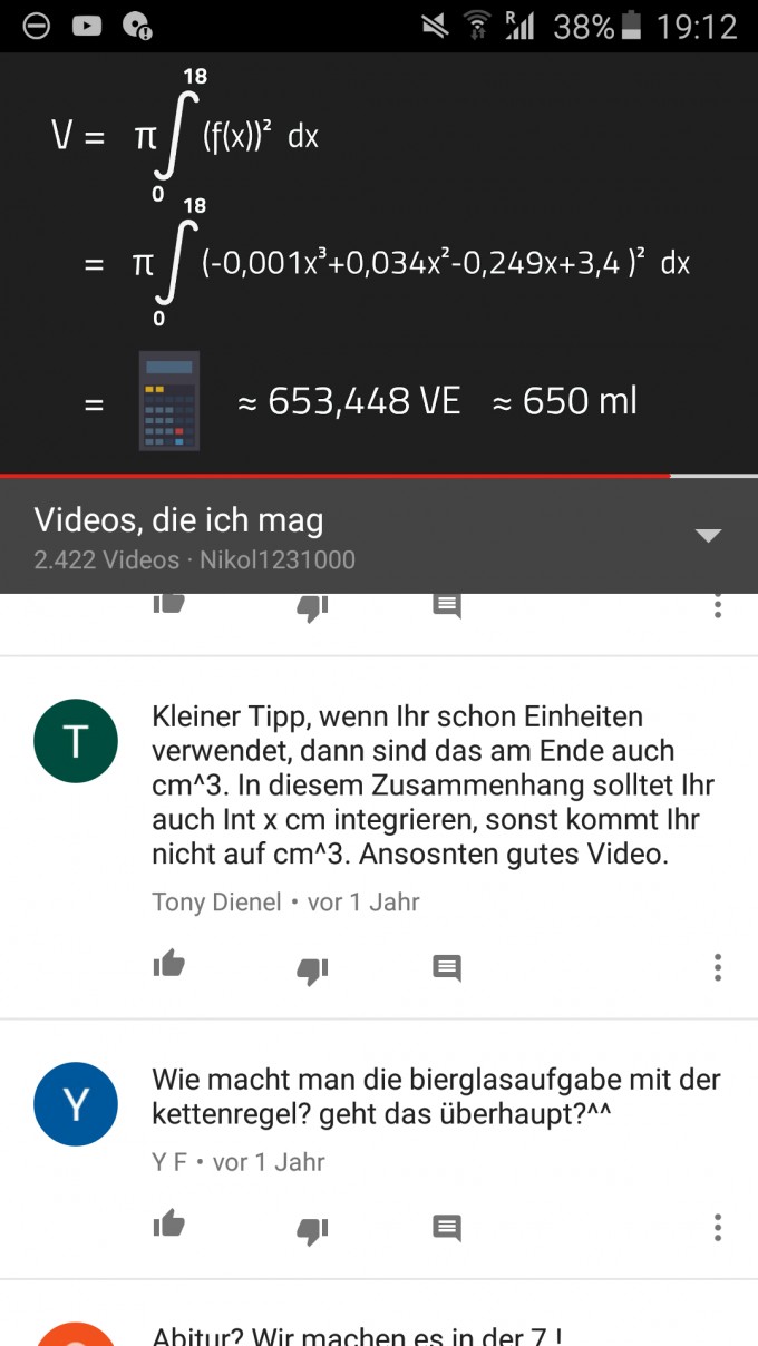 Rotationskorper Integral Mein Taschenrechner Kann Diese Aufgabe